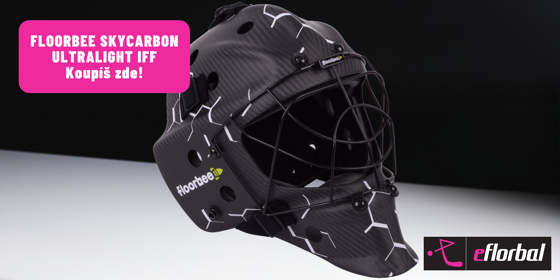 FLOORBEE SkyCarbon UltraLight IFF – Ultra lehká karbonová maska pro elitní gólmany.
