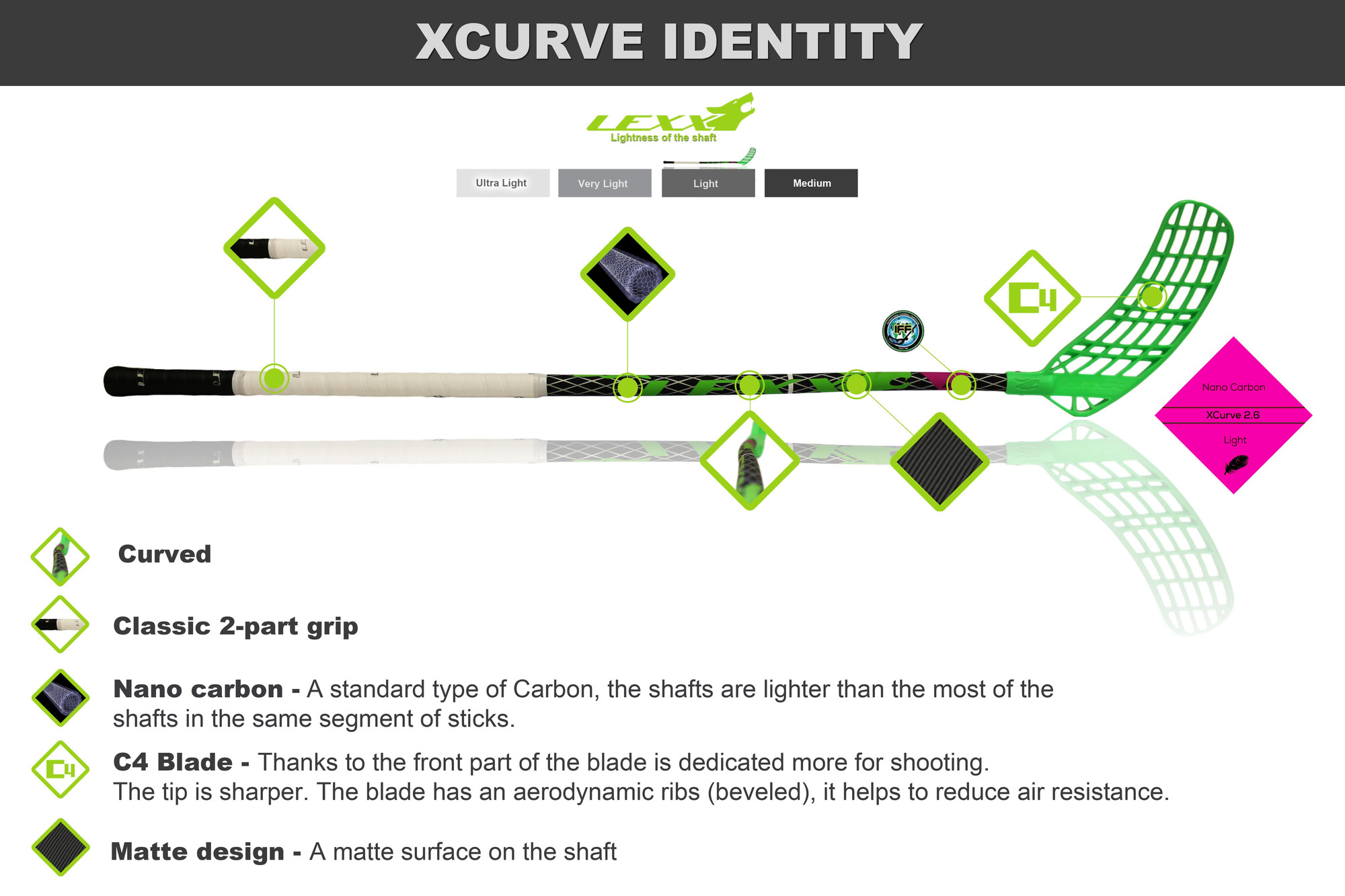 Florbalová hokejka LEXX XCurve C4 2,6 Black/Silver.