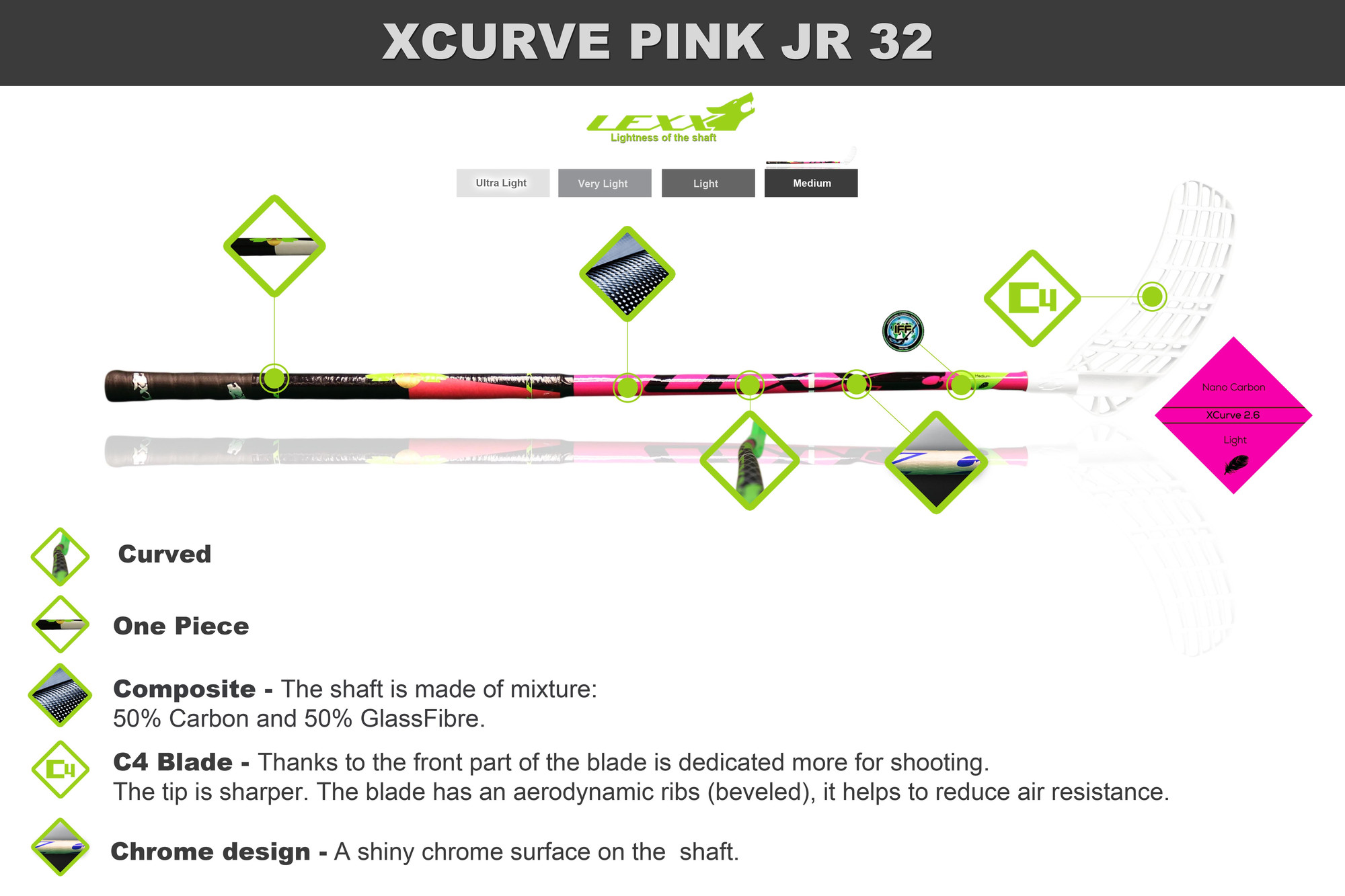 Florbalová hokejka Lexx XCurve C4 3,2 Pink/Black.