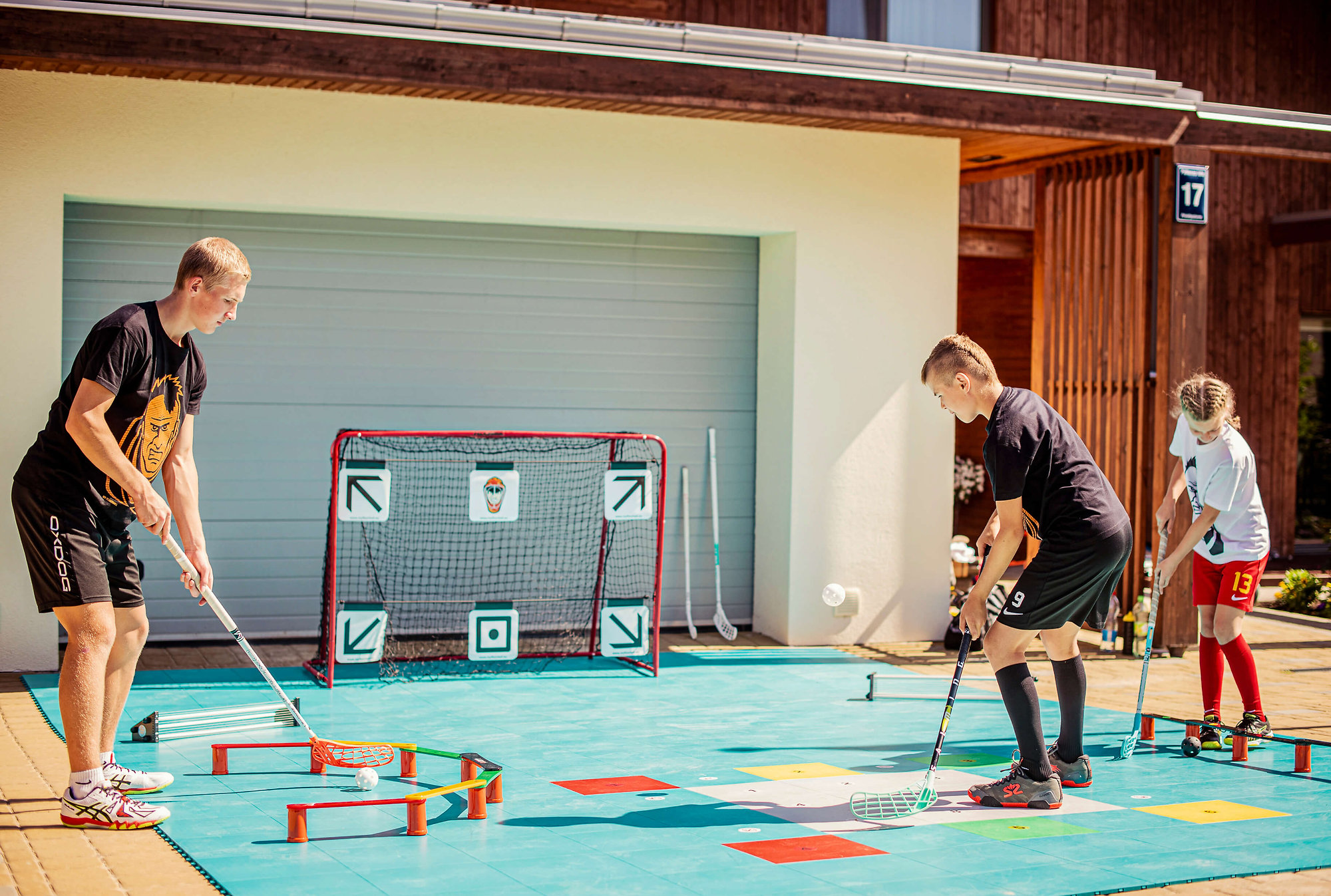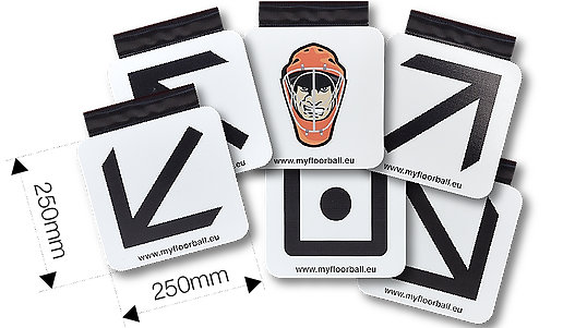 rozdílné barvy a označení slouží k interaktivnímu tréninku a zlepšení střeleckých dovedností pomocí aplikace my Floorball Training (dostupná v App Store a Google Play).
