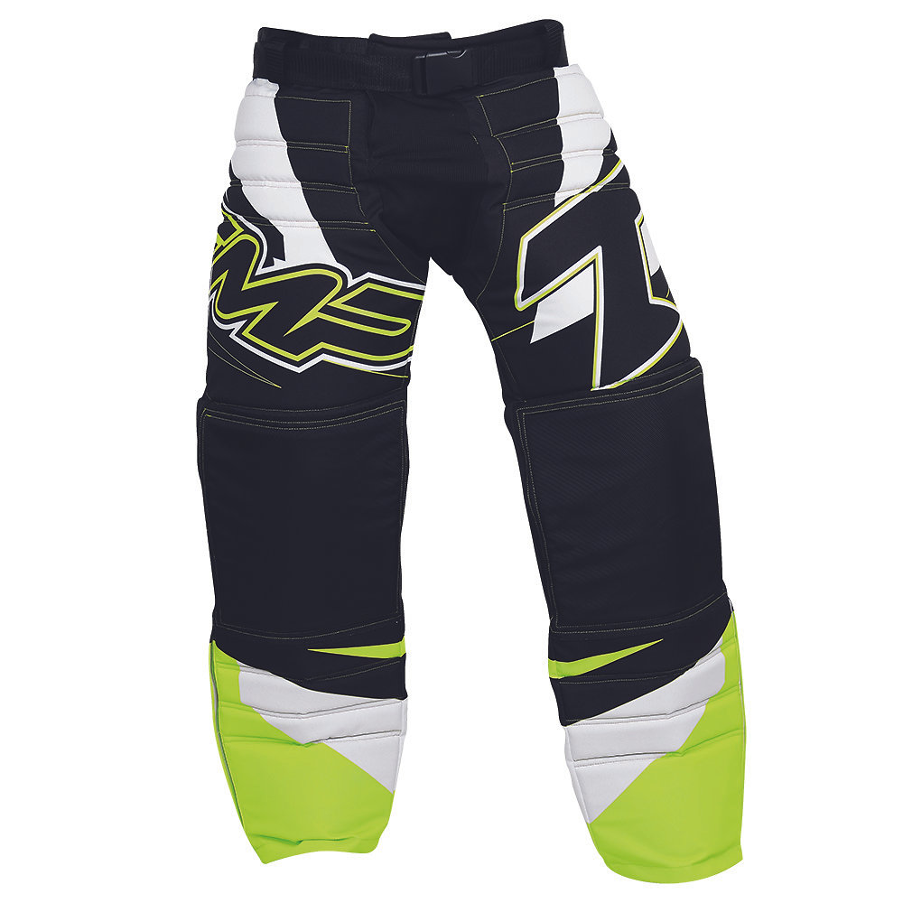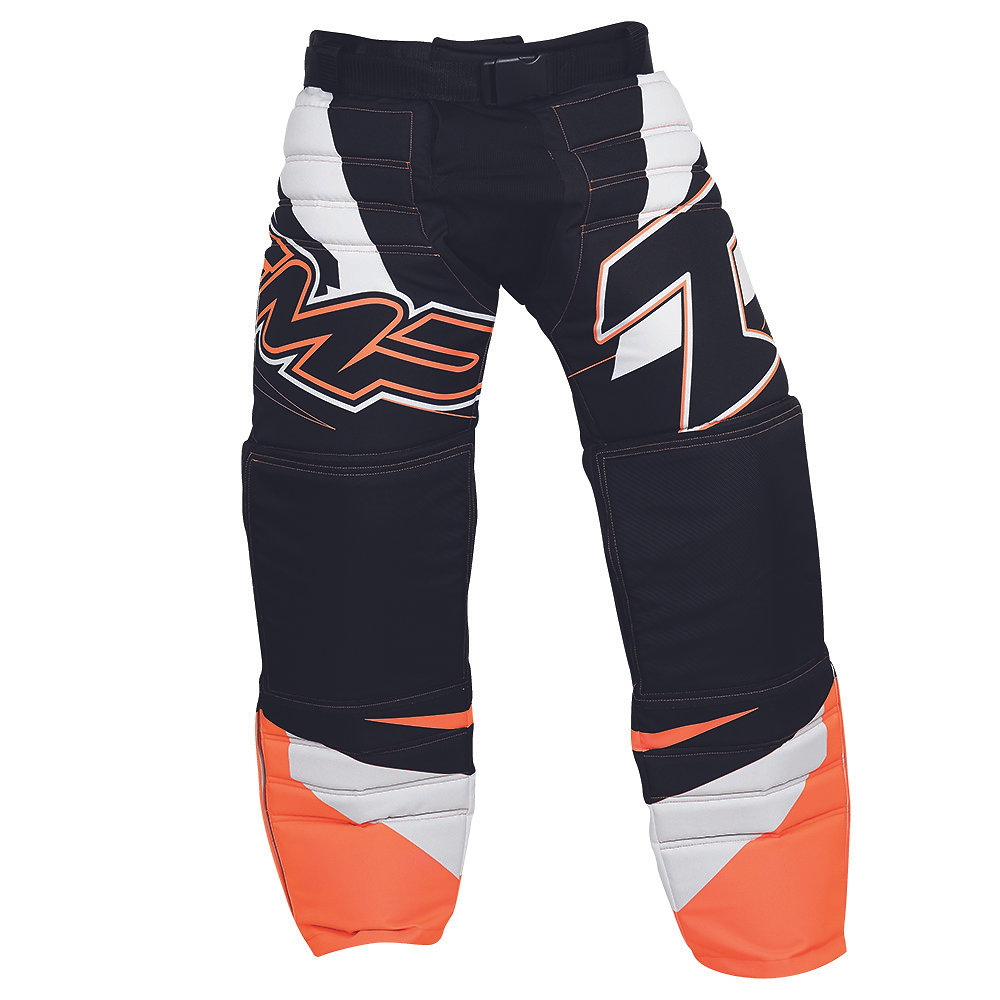 Pohodlné brankářské kalhoty v novém designu s elastickým úpletem v rozkroku pro větší volnost pohybu. Bezpečné vycpávky se přizpůsobí v každé situaci. Vysoce otěruvzdorný materiál na exponovaných místech. Pohodlný a komfortní pásek. TRIPLEX (zapínání za pomocí pružné gumy, pásku na suchý zip a pásku s přezkou) systém zapínání zajistí správnou polohu v každé pozici. Nově přidaný zip v dolní části nohavic pro jednodušší manipulaci s chrániči.