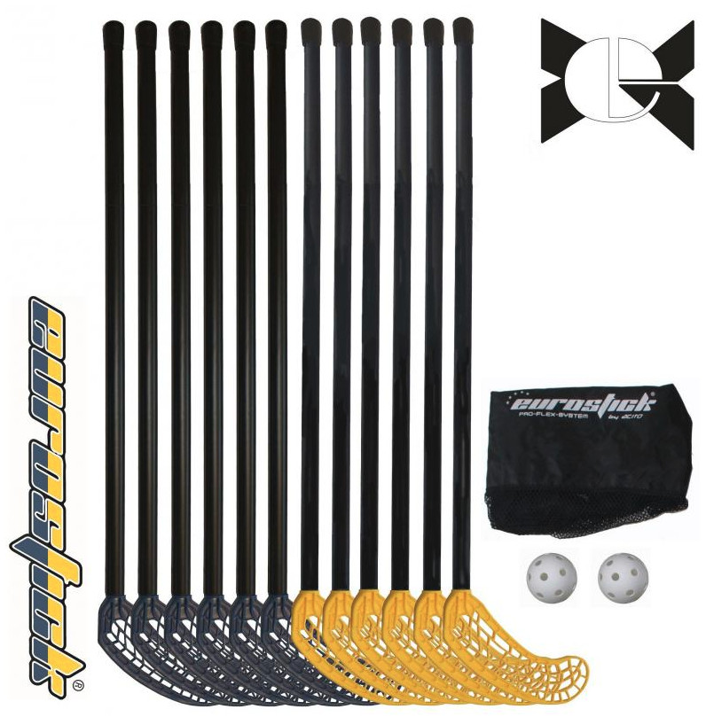 6 + 6 florbalových holí, 2 míčky, 1 nylonová síťovina