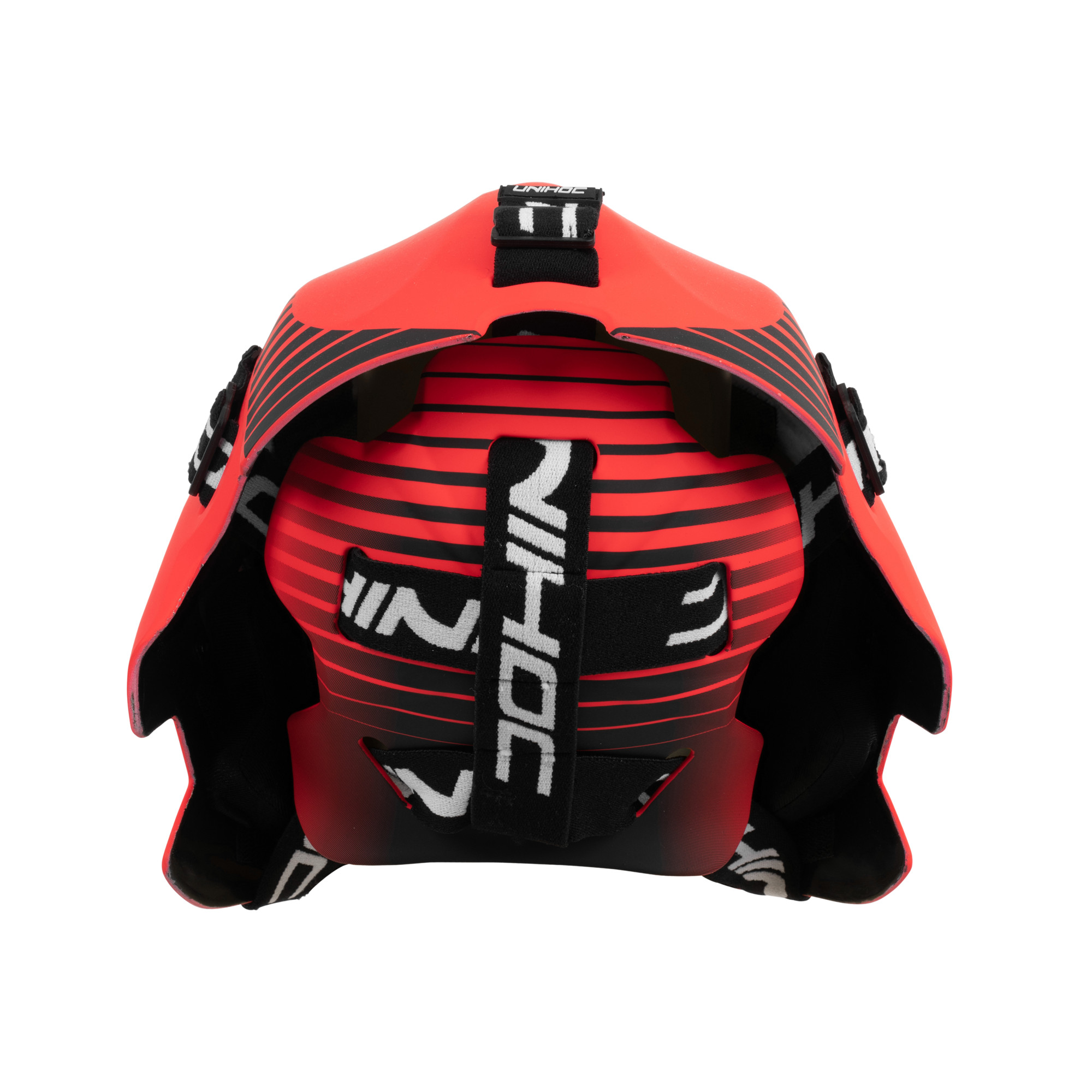 Hlava musí být po celou dobu v maximálním bezpečí a komfortu. Tato maska spojuje ověřené prvky a zkušenosti brankářů v jeden celek. Maska je lehká a umožňuje rychlý pohyb hlavou pro dokonalý přehled o hře. Uvnitř masky jsou rozmístěné odnímatelné polstry. Chrání hlavu při nárazu a zároveň efektivně odvádí pot. Chránič brady je z měkké pěny a je nastavitelný. Aby maska dokonale seděla každému brankáři, jde snadno přizpůsobit díky pěti přezkám na vnější straně masky. Masku hravě nasadíte jednou rukou a díky pružným gumovým popruhům drží bezpečně i při náročných situacích a těžkých zákrocích. Brankáři se shodují, že i při zákrocích, kdy musí skočit po míčku, helma drží pevně a mohou se spolehnout, že mají nejlepší možný přehled o situaci okolo sebe.
