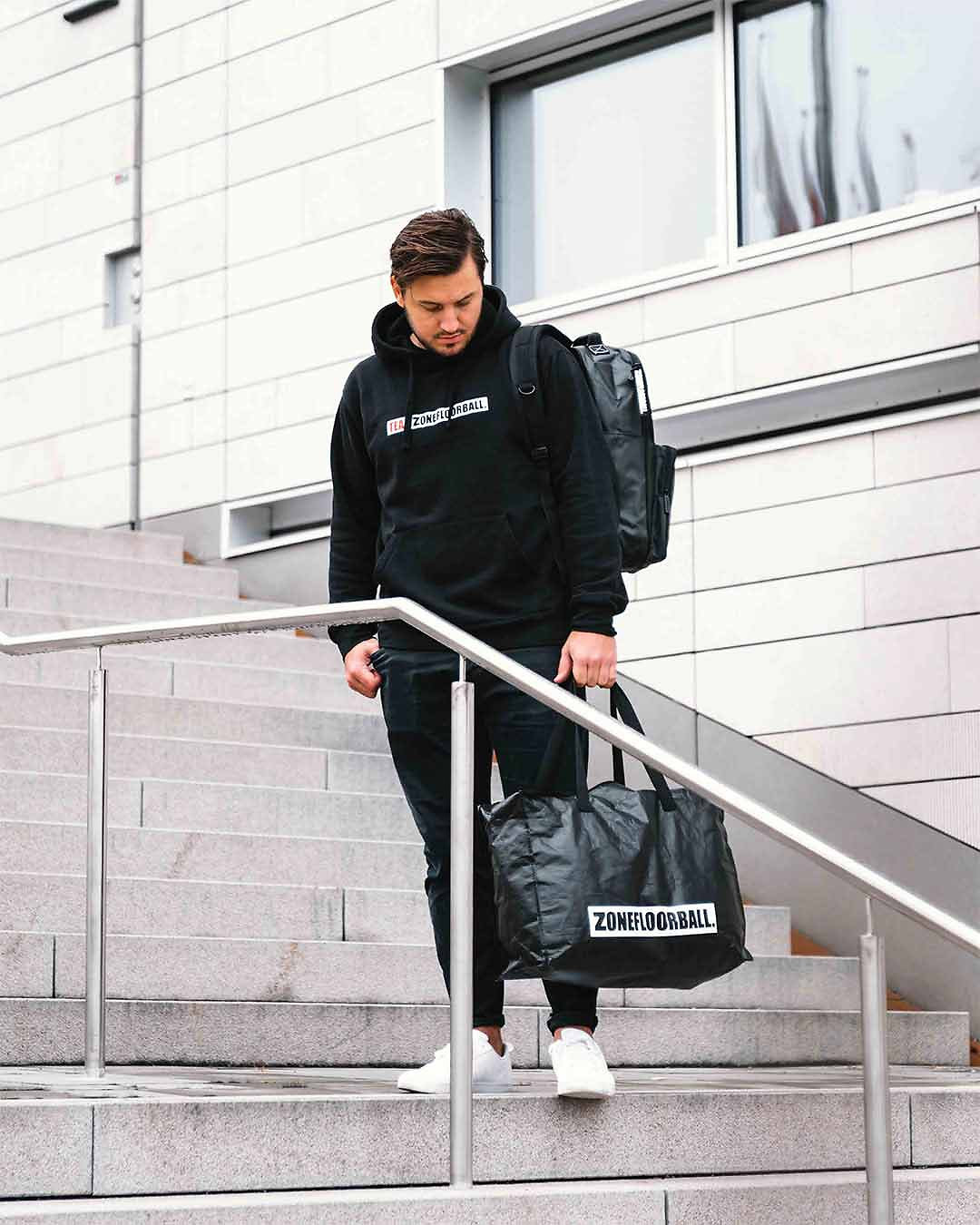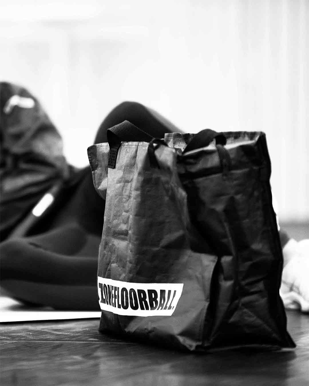 Pevná reklamní taška Zonefloorball. Taška ve stylu IKEA taška.