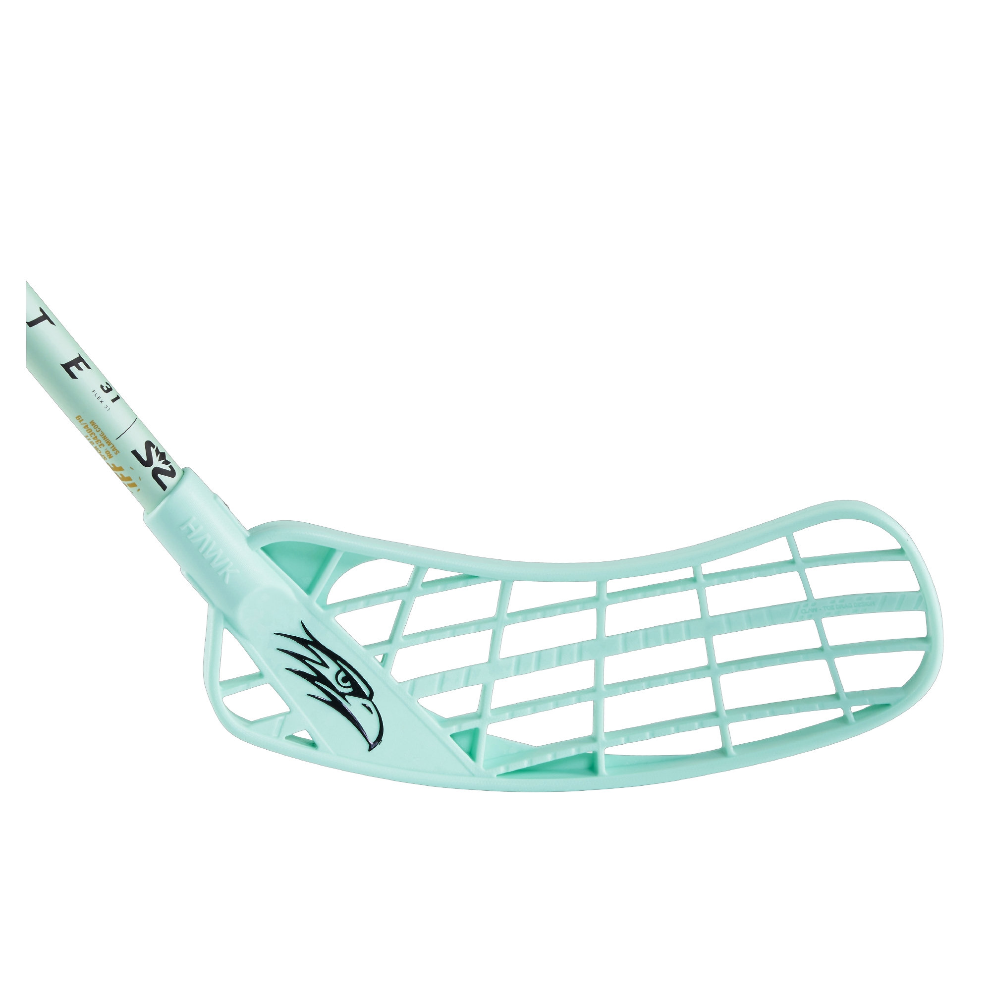 Na špičce naleznete Claw - tzv. dráp čepele Salming Hawk (překlad jestřáb či sokol), se kterým budou všechny kličky a stahovačky ještě rychlejší a přesnější. Salming Hawk má zesílené prostřední žebro, které zamezuje nechtěnému kroucení čepele při její zatížení. Na vývoji této čepele se podíleli krom jiných i naši ambasadoři Robin Nilsberth a Rasmus Sundstedt. Na patce je natisknuté blýskavé logo Salming Hawk.