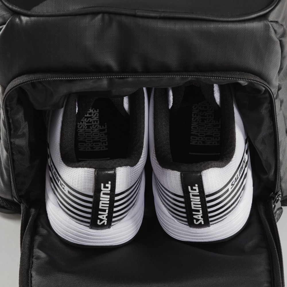 Batoh Salming Multi Backpack je vyroben z odolného materiálu, který drží tvar. Je vybaven speciální kapsou, kam se dá zasunout buď raketa na squash nebo florbalka. Speciální vak chrání florbalce omotávku. Batoh má oddělenou kapsu na boty nebo notebook.