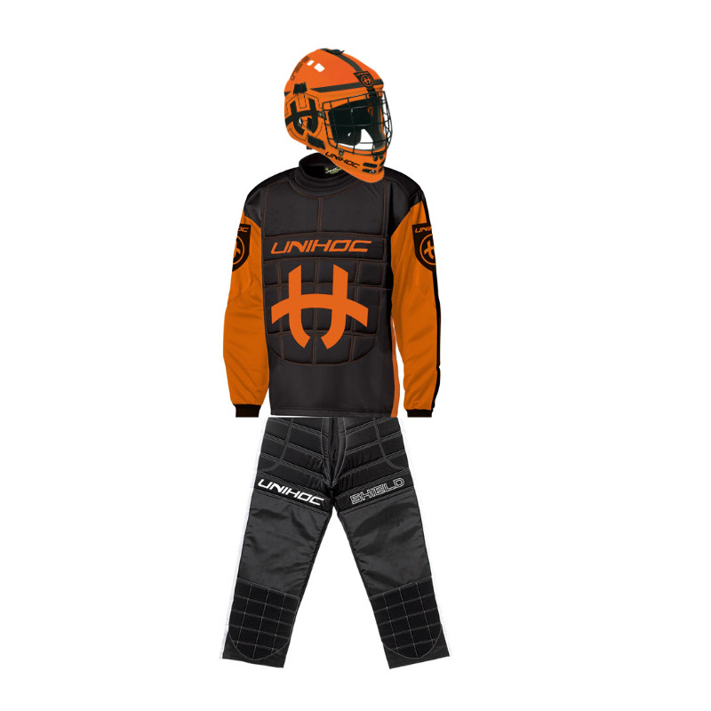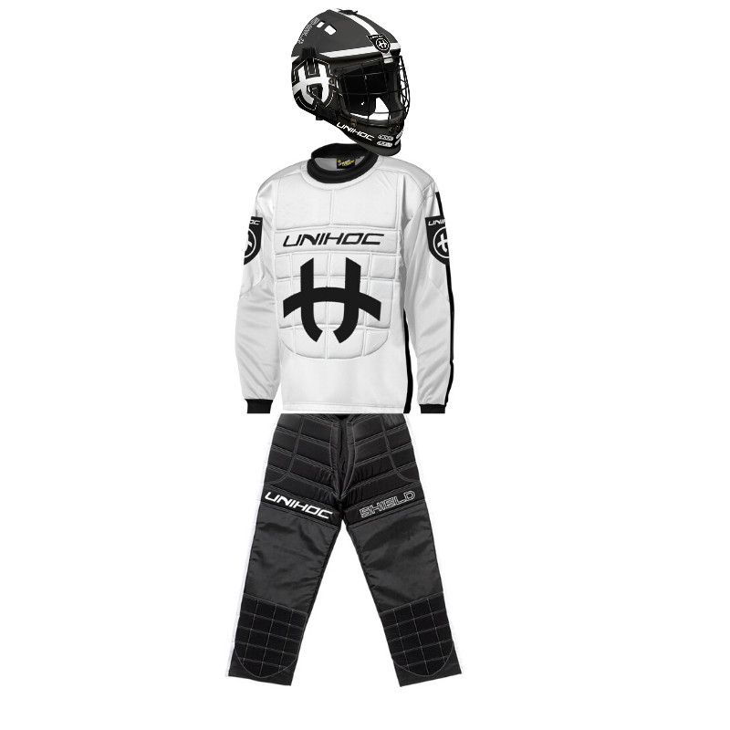 Florbalový Dres Shield je špičkový ochranný oděv pro florbalové brankáře. Dres je lehký, pružný a díky použitému materiálu dobře odvádí pot a teplo. Budete se pod ním zkrátka cítit v naprostém pohodlí. Ke komfortu pomáhá také elastický prodyšný materiál na ramenou a zádech. Vypadejte větší, než ve skutečnosti jste. Brankář musí budit hrůzu a působit, že vyplnil veškerý prostor v brance. S tímto dresem tak vypadat budete. Tlumení střel pak nabízí také vycpávky na hrudní i břišní části dresu, které jsou vyrobeny z 6 mm pěny. Shield je dobrý jak do zápasu, tak i na trénink.