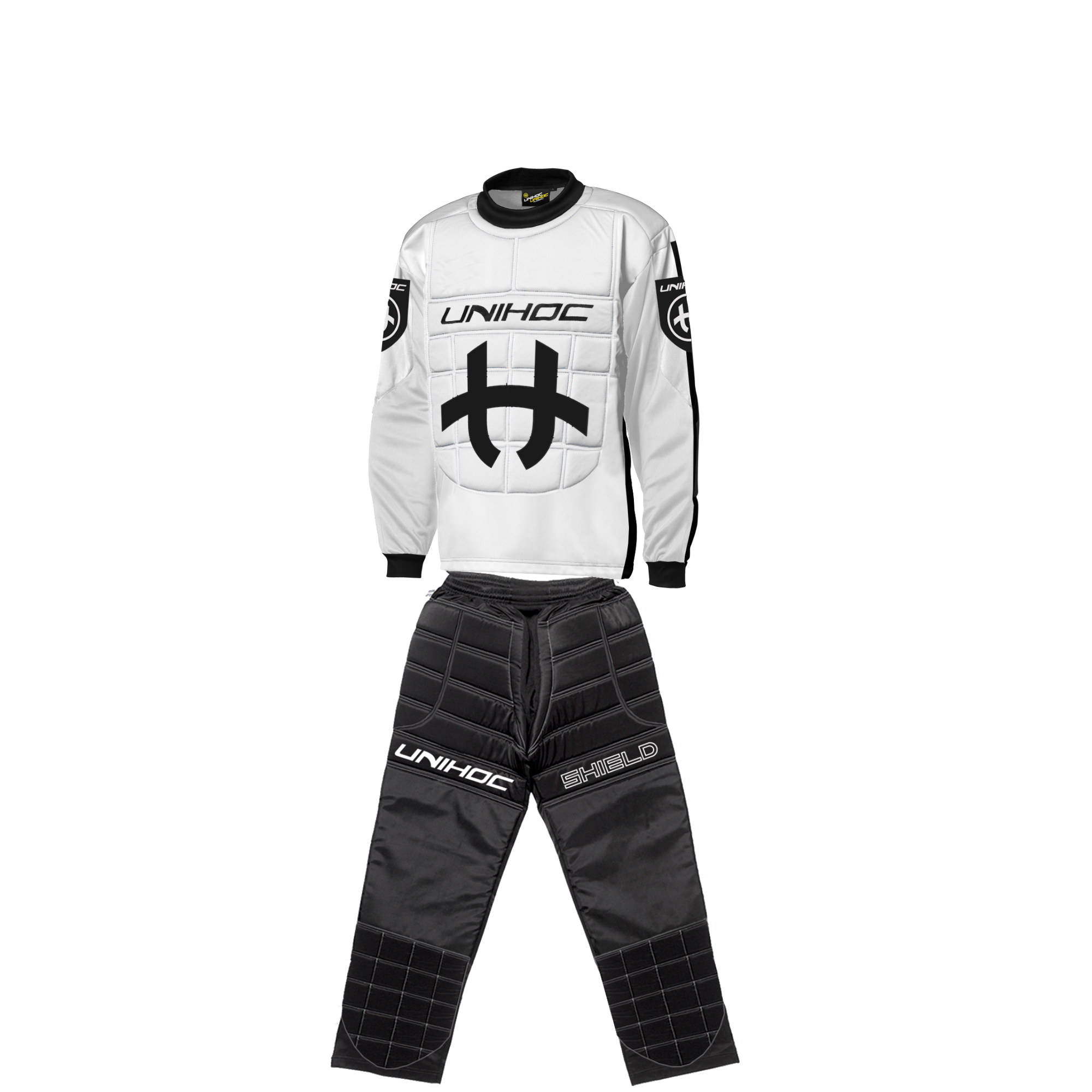 Florbalový Dres Shield je špičkový ochranný oděv pro florbalové brankáře. Dres je lehký, pružný a díky použitému materiálu dobře odvádí pot a teplo. Budete se pod ním zkrátka cítit v naprostém pohodlí. Ke komfortu pomáhá také elastický prodyšný materiál na ramenou a zádech. Vypadej větší, než ve skutečnosti jsi. Brankář musí budit hrůzu a působit, že vyplnil veškerý prostor v brance. S tímto dresem tak vypadat budeš. Tlumení střel pak nabízí také vycpávky na hrudní i na břišní části dresu, které jsou vyrobeny z 6 mm pěny. Dres Shield je dobrý jak do zápasu, tak i na trénink. Zároveň skvěle pasuje k MASKÁM SHIELD.