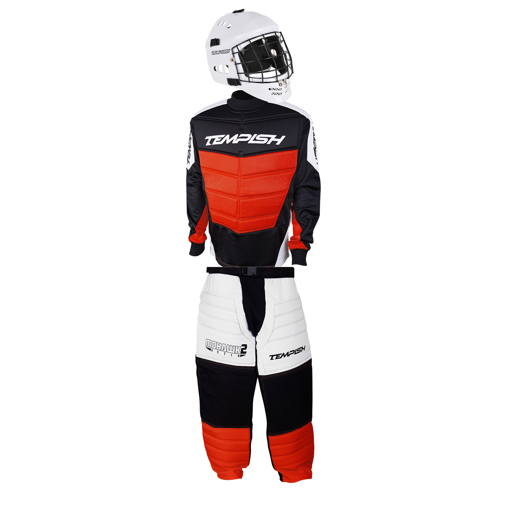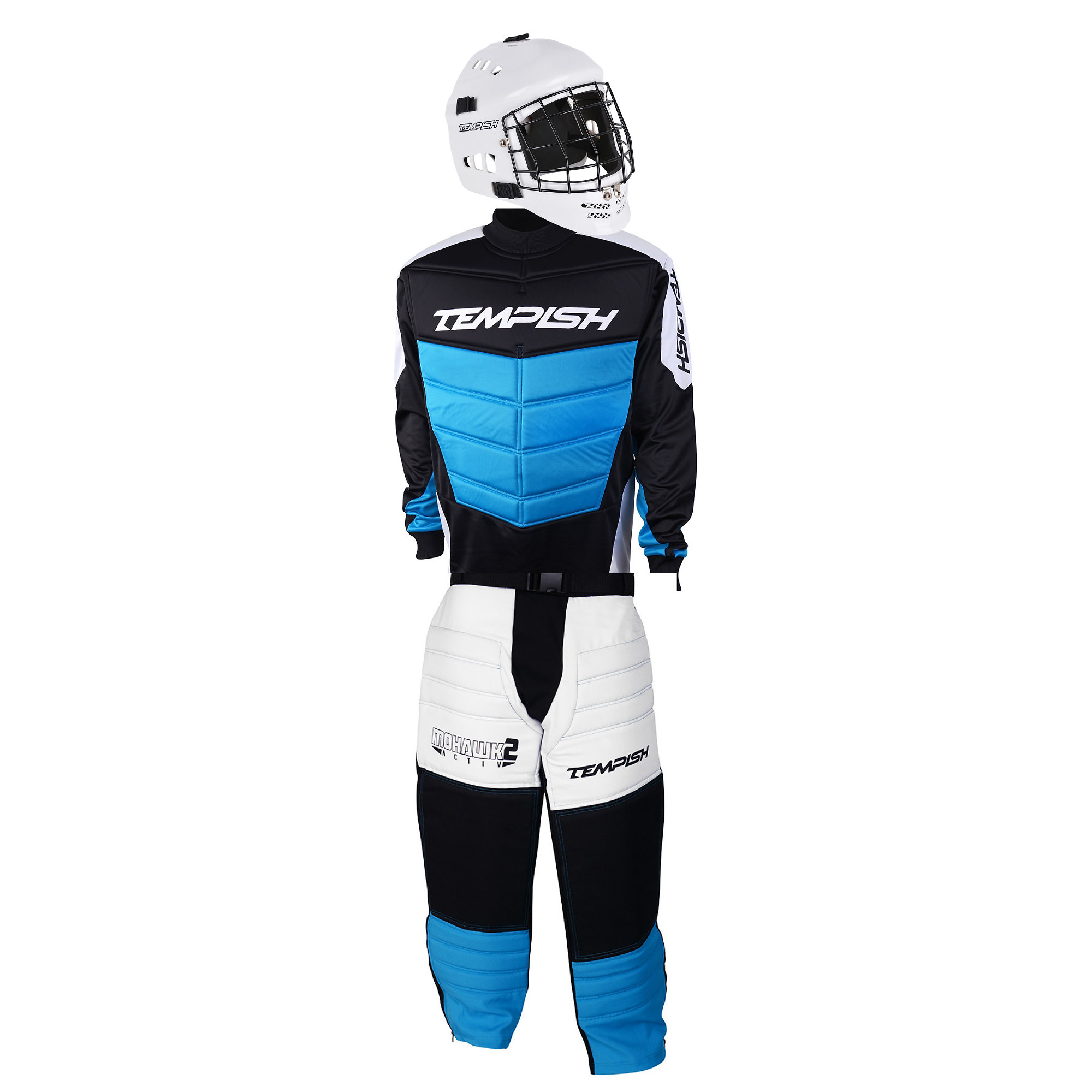 Pohodlné brankářské kalhoty v novém designu s elastickým úpletem v rozkroku pro větší volnost pohybu. Bezpečné vycpávky se přizpůsobí v každé situaci. Vysoce otěruvzdorný materiál na exponovaných místech. Pohodlný a komfortní pásek. TRIPLEX (zapínání za pomocí pružné gumy, pásku na suchý zip a pásku s přezkou) systém zapínání zajistí správnou polohu v každé pozici. Nově přidaný zip v dolní části nohavic pro jednodušší manipulaci s chrániči.