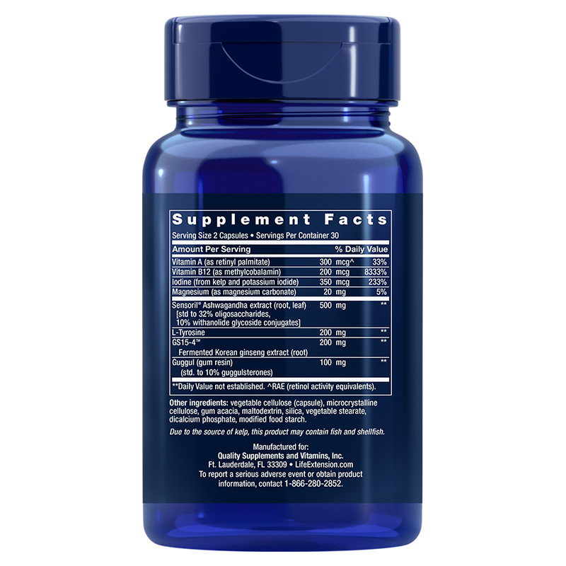 Užívejte jednu (1) tobolku dvakrát denně, nejlépe brzy ráno nebo podle doporučení lékaře. Pokud krevní testy na funkci štítné žlázy odhalí nižší než optimální hladiny hormonů, poraďte se se svým lékařem pro další vyšetření.