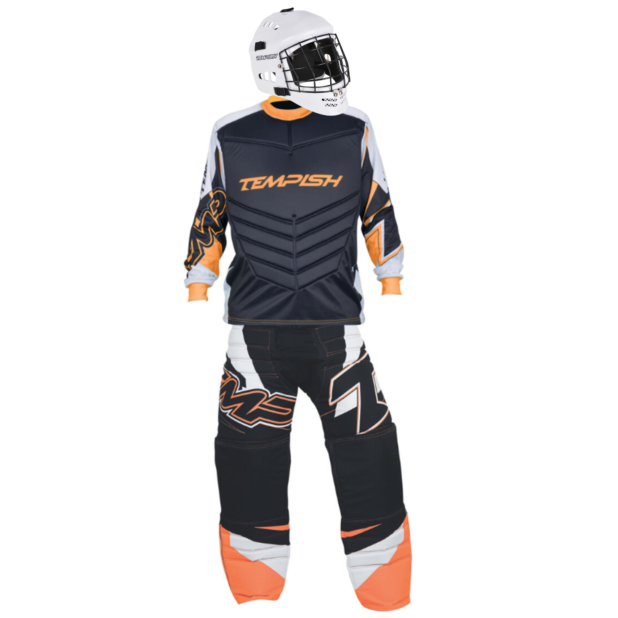 Pohodlné brankářské kalhoty v novém designu s elastickým úpletem v rozkroku pro větší volnost pohybu. Bezpečné vycpávky se přizpůsobí v každé situaci. Vysoce otěruvzdorný materiál na exponovaných místech. Pohodlný a komfortní pásek. TRIPLEX (zapínání za pomocí pružné gumy, pásku na suchý zip a pásku s přezkou) systém zapínání zajistí správnou polohu v každé pozici. Nově přidaný zip v dolní části nohavic pro jednodušší manipulaci s chrániči.