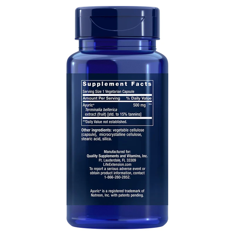 | Ayruric™ Terminalia bellerica extrakt (ovoce) [std. až 15 % tříslovin] | 500 mg |