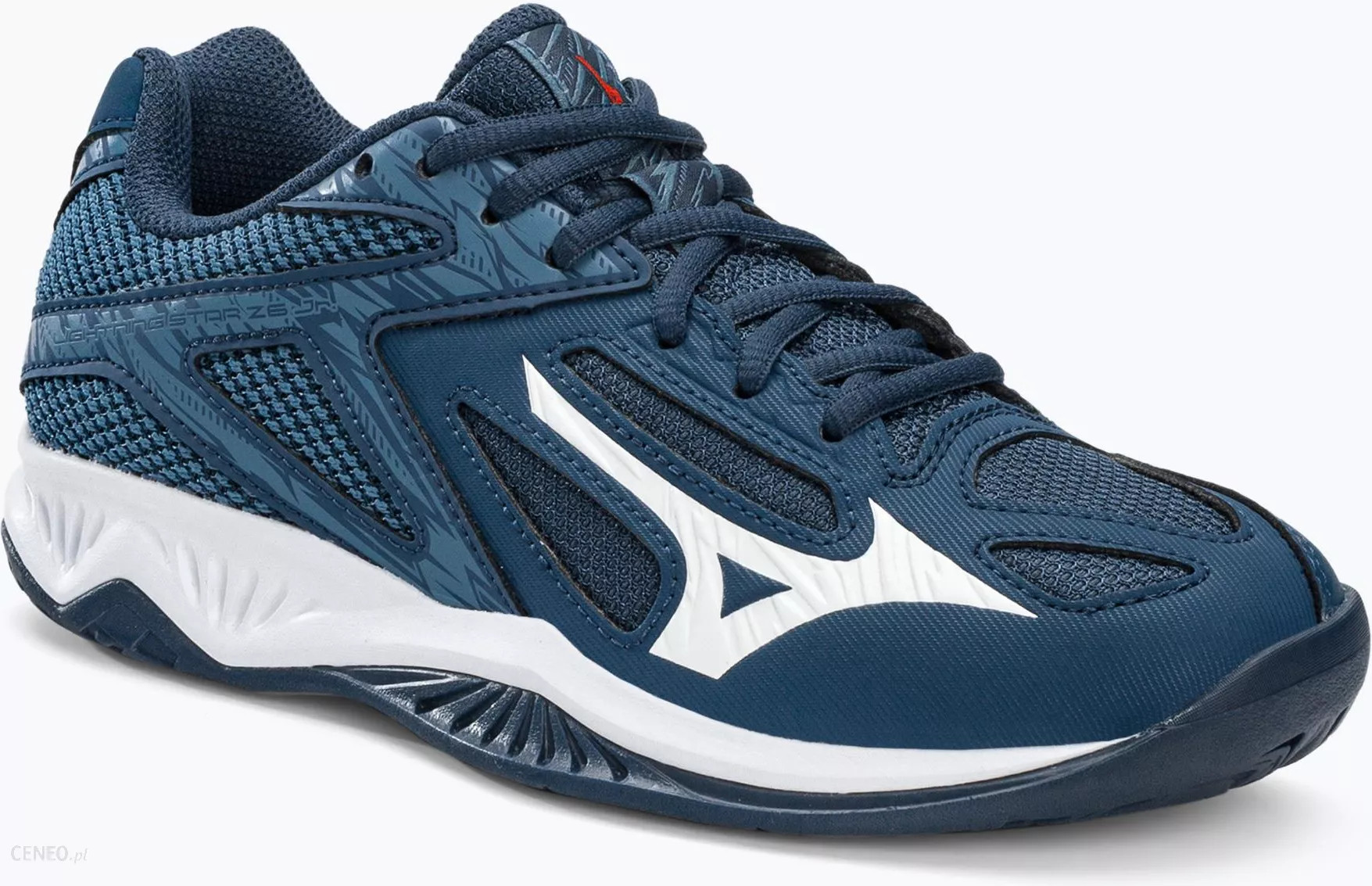 Dětské sportovní boty Mizuno Lightning Star Z6 Jr V1GD210321 v tmavě modré barvě. Tyto boty jsou určeny pro děti, kteří se chtějí věnovat indoorovým sportům, jako jsou florbal, volejbal, házená, badminton a další.