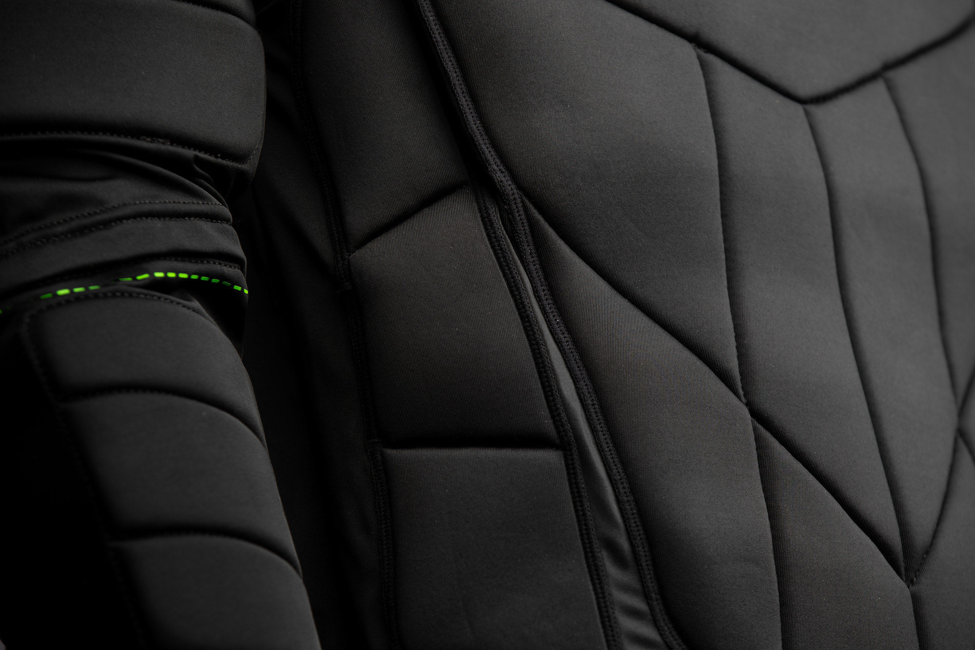 Vesta je vybavena výztuhami na hrudníku, břiše, pažích a ramenou, které tlumí nárazy a chrání před bolestivými zraněními. Elastický střih se přizpůsobí tělu a neomezuje pohyb. Má také zip na zádech.
