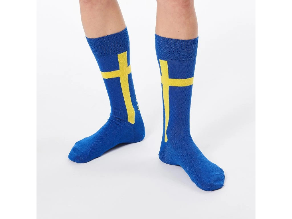 V barvách švédské vlajky — modré a žluté — tyto ponožky od Fat Pipe posílí tvůj styl i sebevědomí. Jsou stejně dynamické jako Švédové na hřišti!