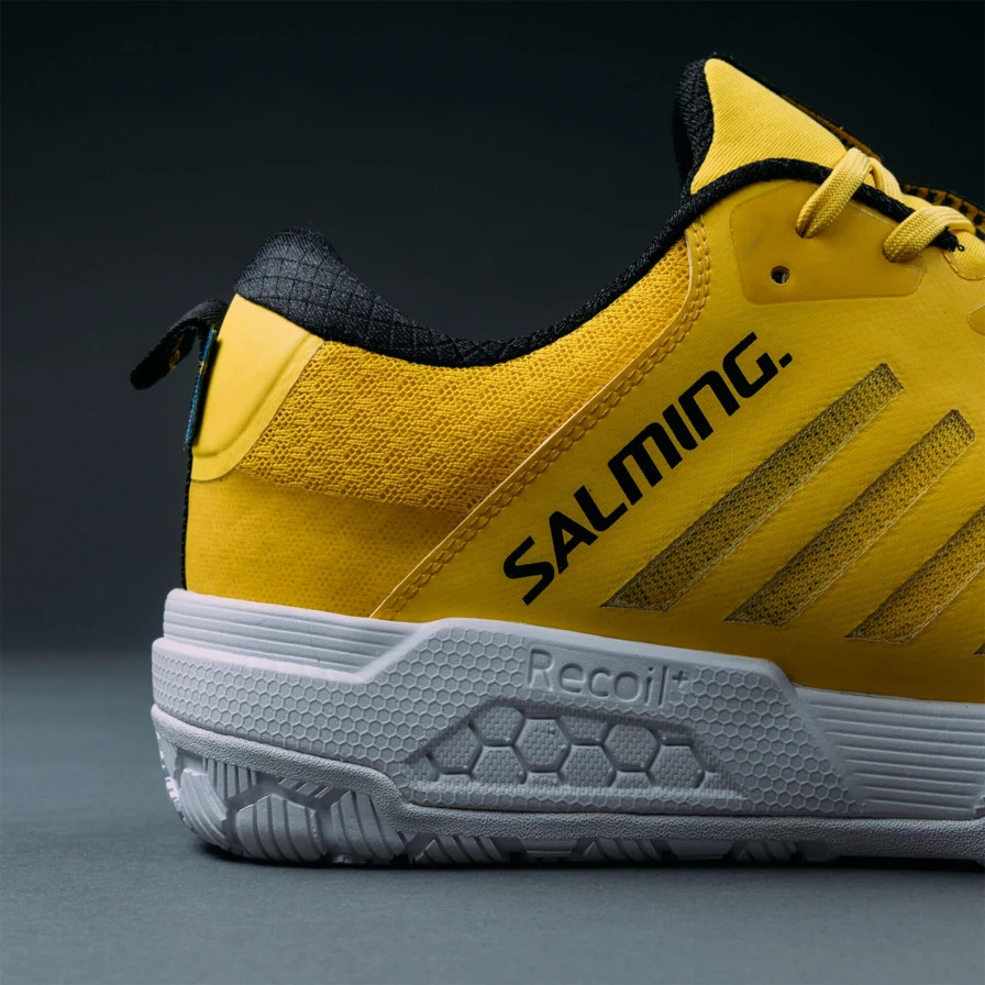 Salming Recoil Strike 2 jsou druhou generací sálovek navržených pro agilní hráče, kteří vynikají rychlými změnami směru. Nová konstrukce svršku nabízí zvýšenou oporu a stabilitu, díky speciálnímu tunelovitému prvku Exo-Skeleton, který po utažení šněrování pevně obepne nohu a zajistí maximální podporu i při prudkých změnách směru.